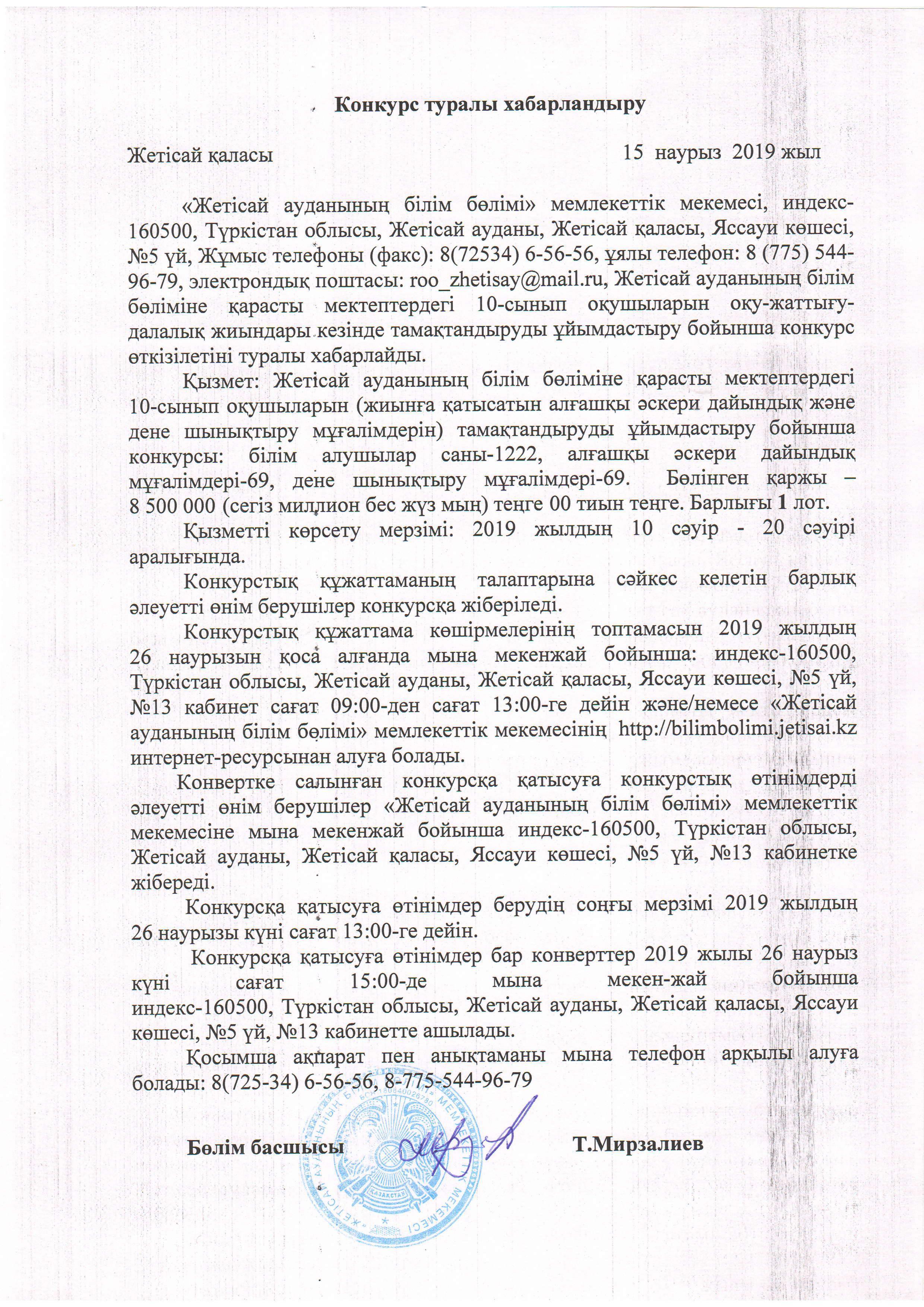 20 сентябрь "Үздік жас мұғалім-2019" облыстық байқауының аудандық кезеңі