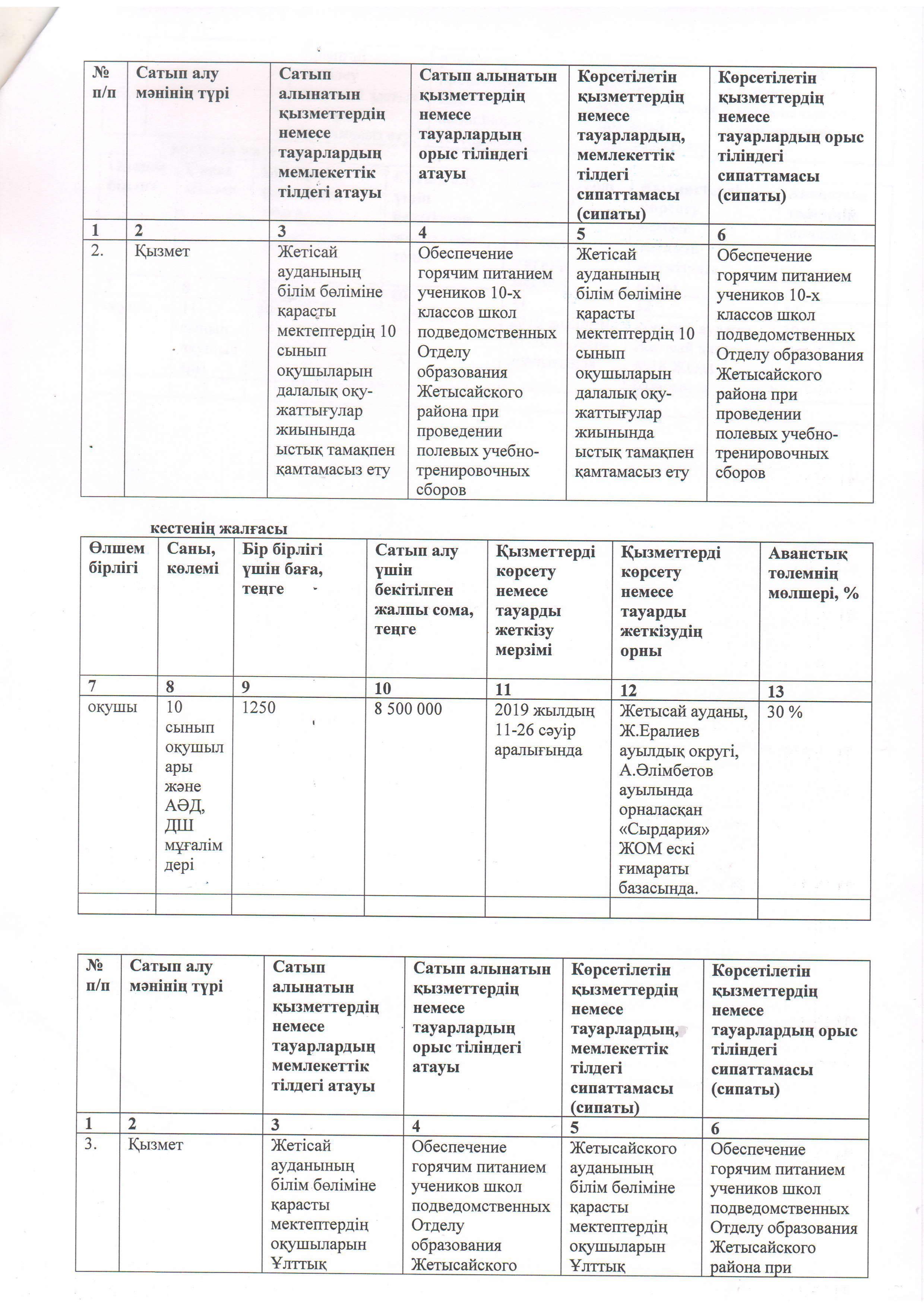 » » Тауарлар мен көрсетілетін қызметтерді сатып алу жоспары